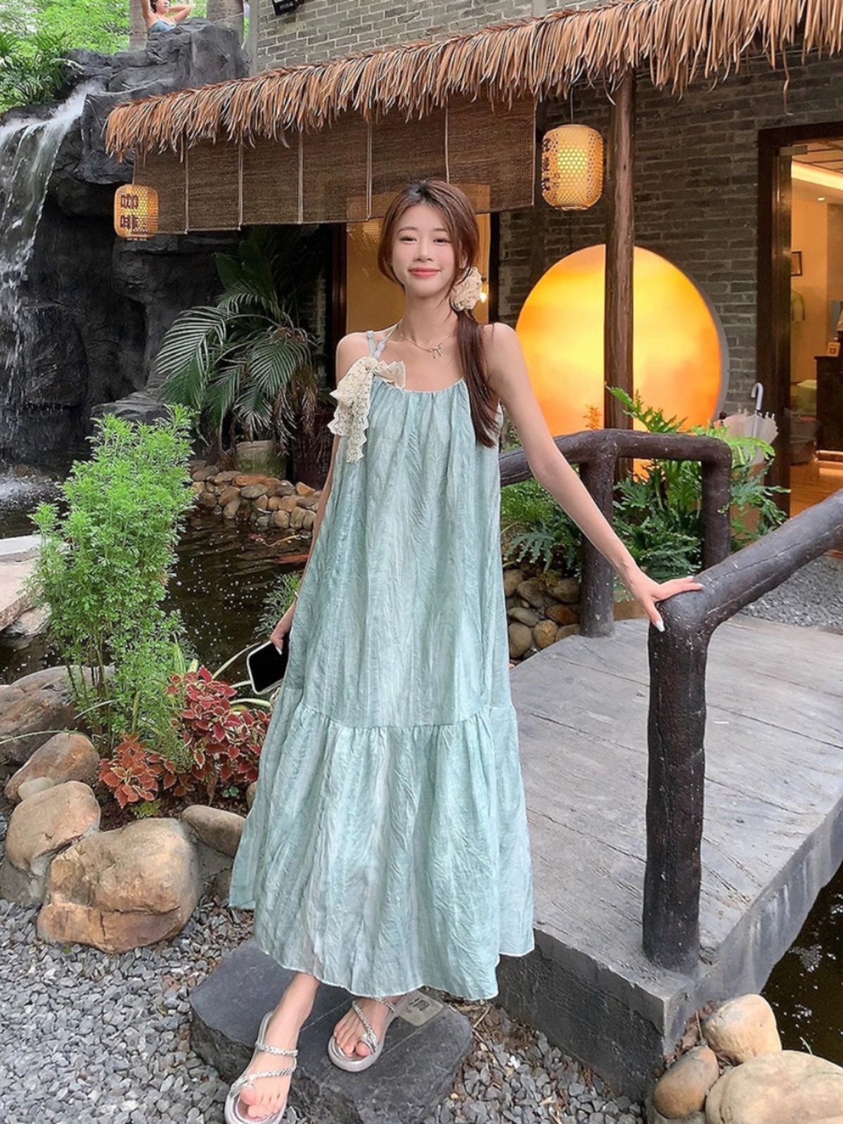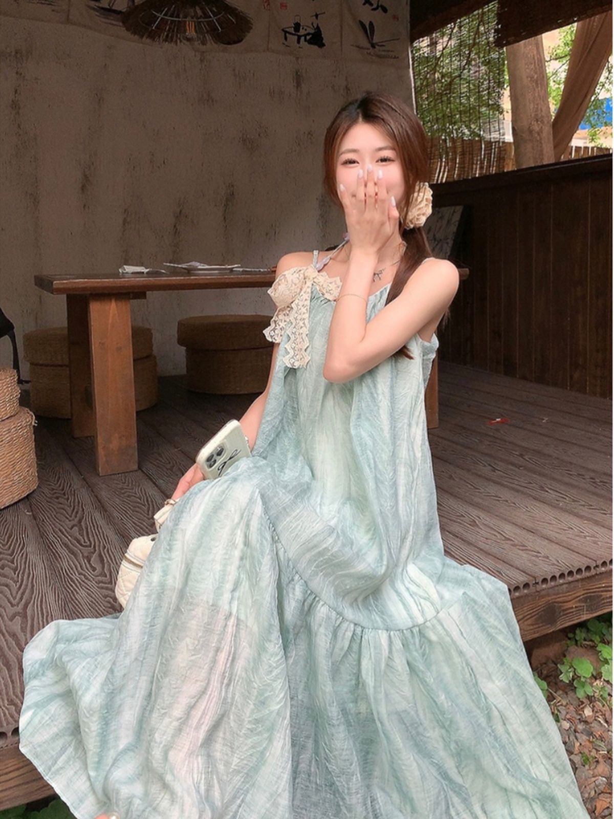• Mint green tie-dye sundress for women, a fresh and loose-fitting summer vacation dress