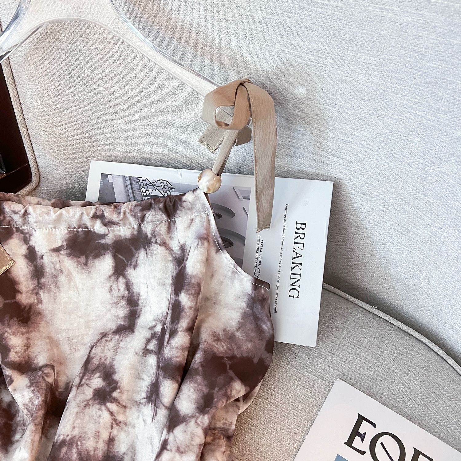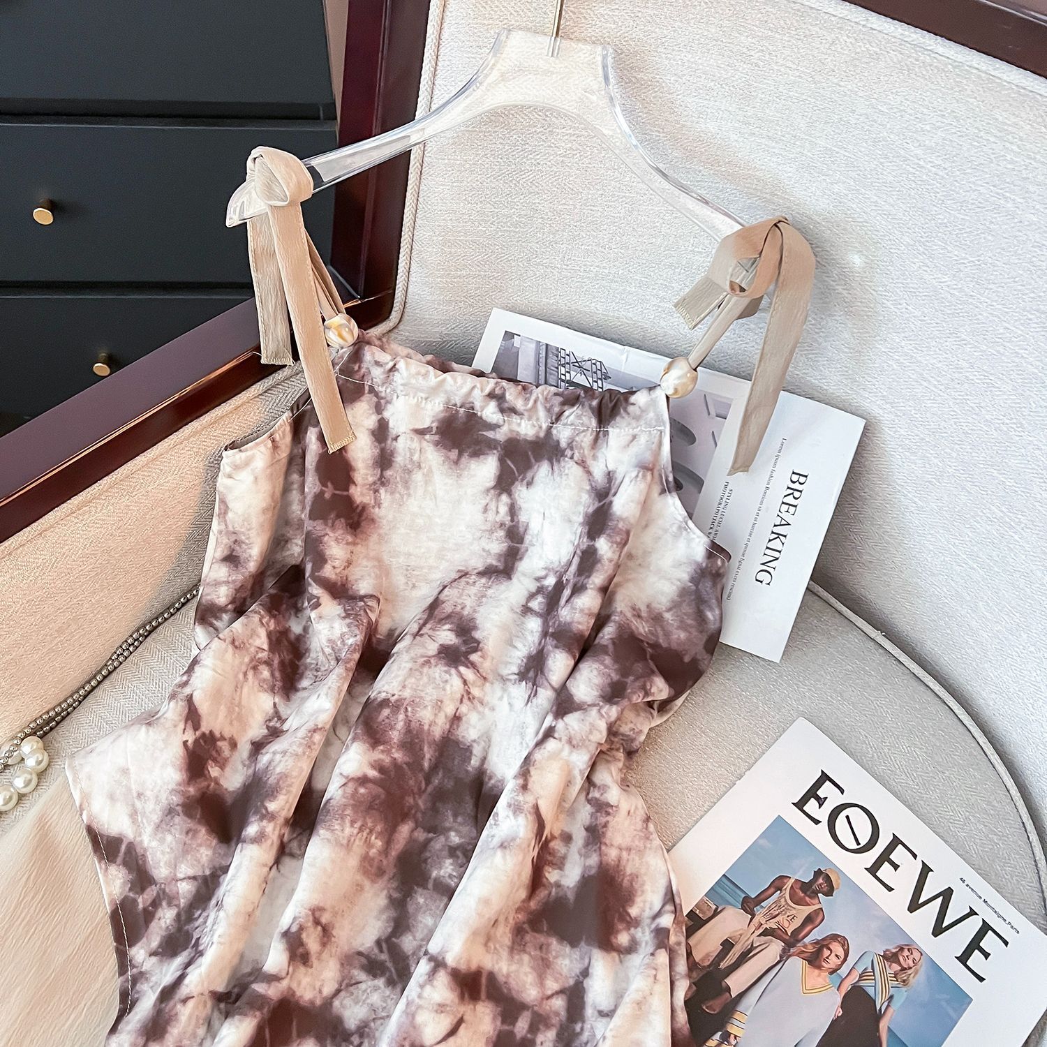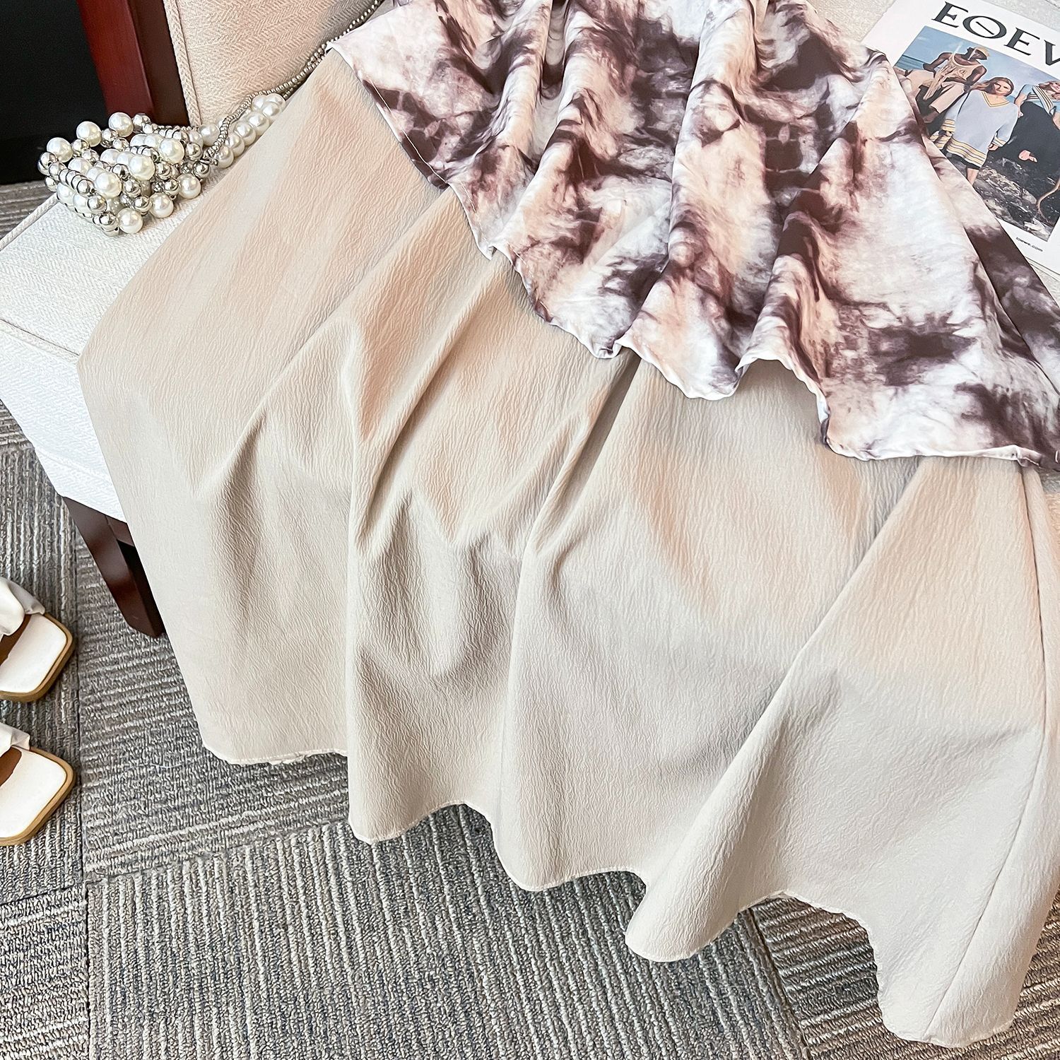 French retro high-end tie-dye slip dress, niche design, elegant printed maxi dress, 2025 new style.