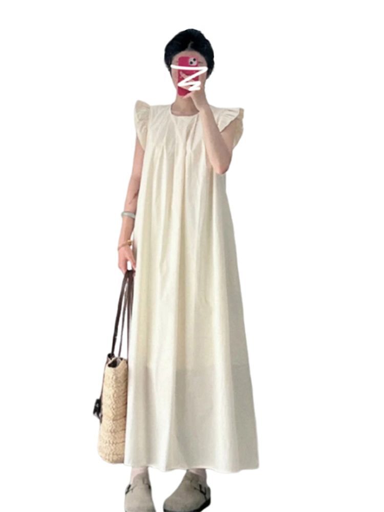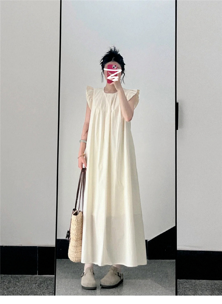 French-style white dress with short flutter sleeves, perfect for summer 2025, suitable for petite women and ideal for a beach vacation.