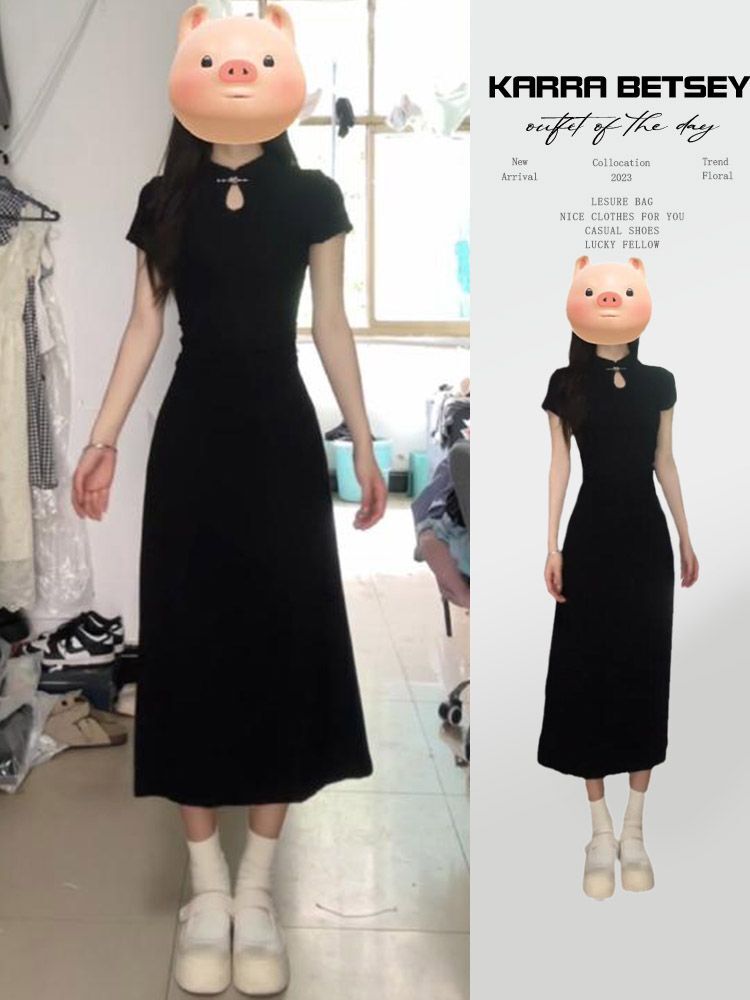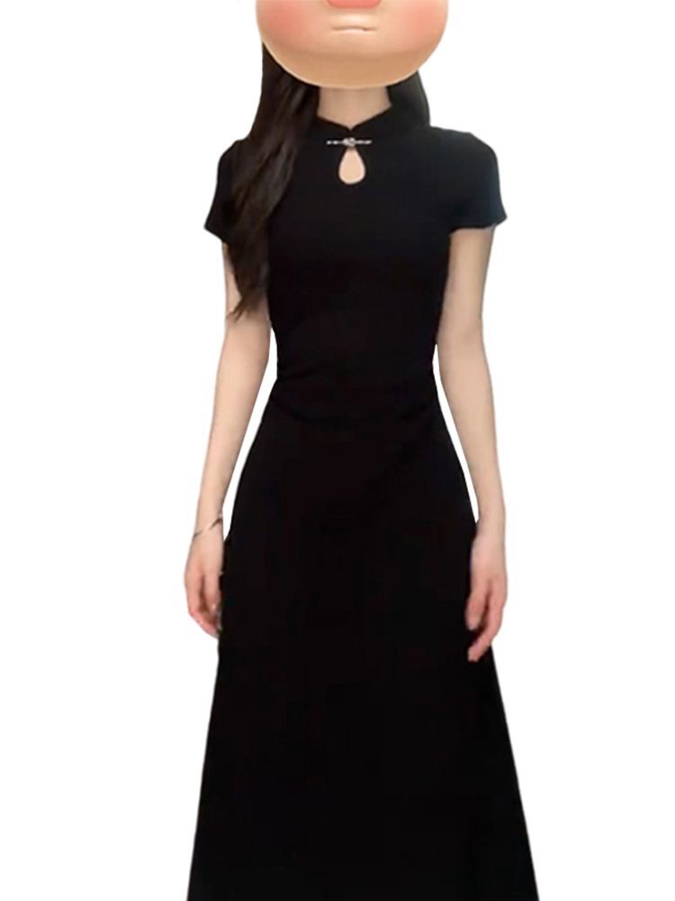 New Chinese style black slim-fit dress for women, summer, sophisticated and elegant, with Chinese style button closure, modified cheongsam dress.