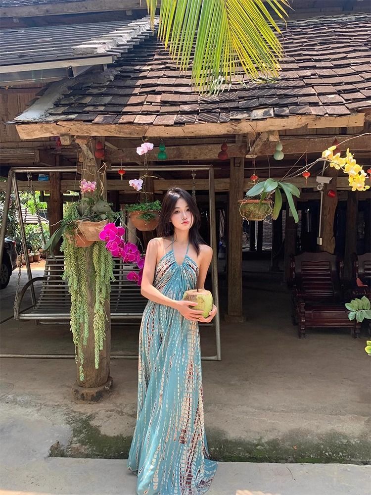• Bohemian-style summer vacation dress, new French-style travel photo shoot beach dress, elegant long dress.