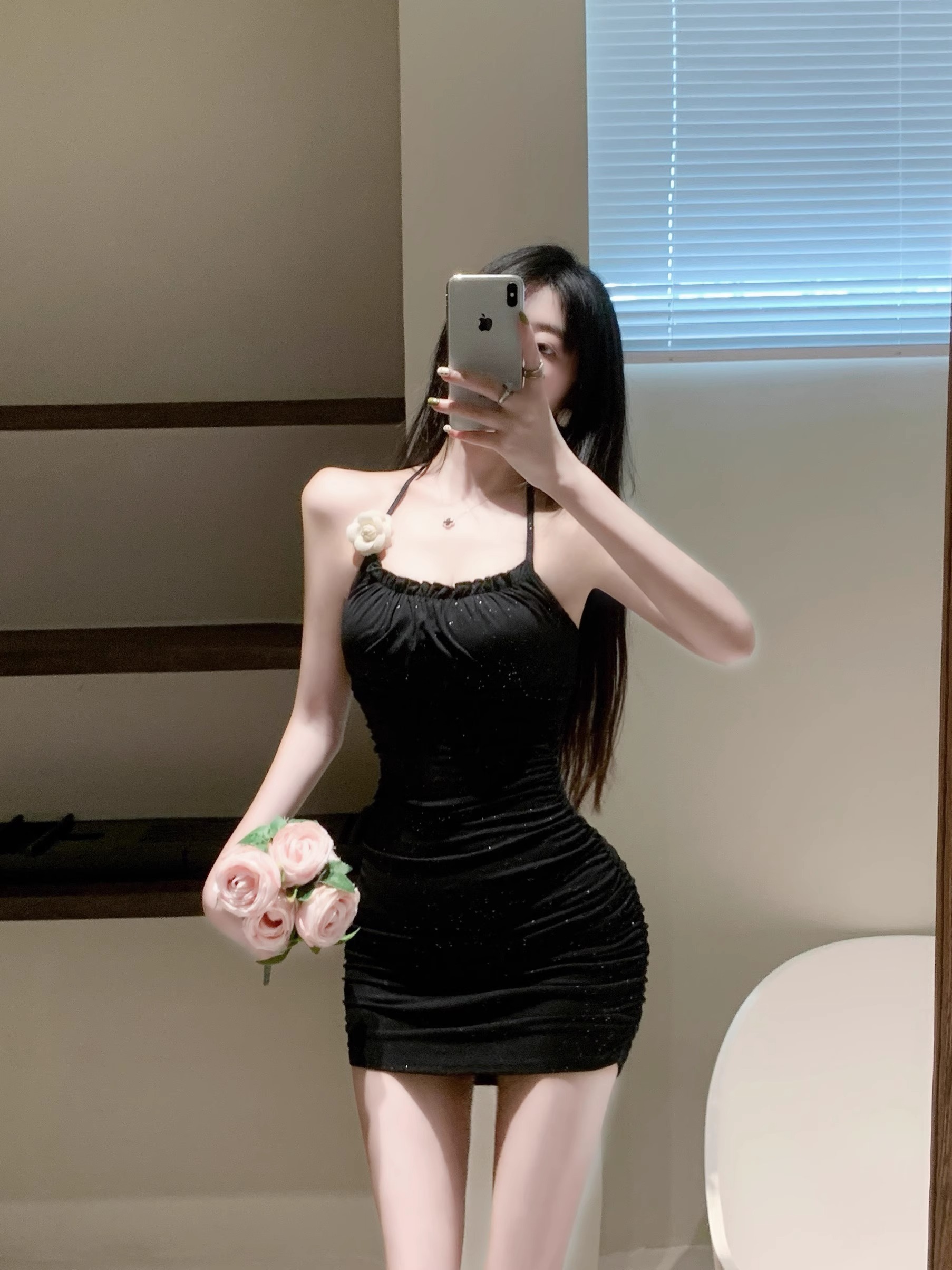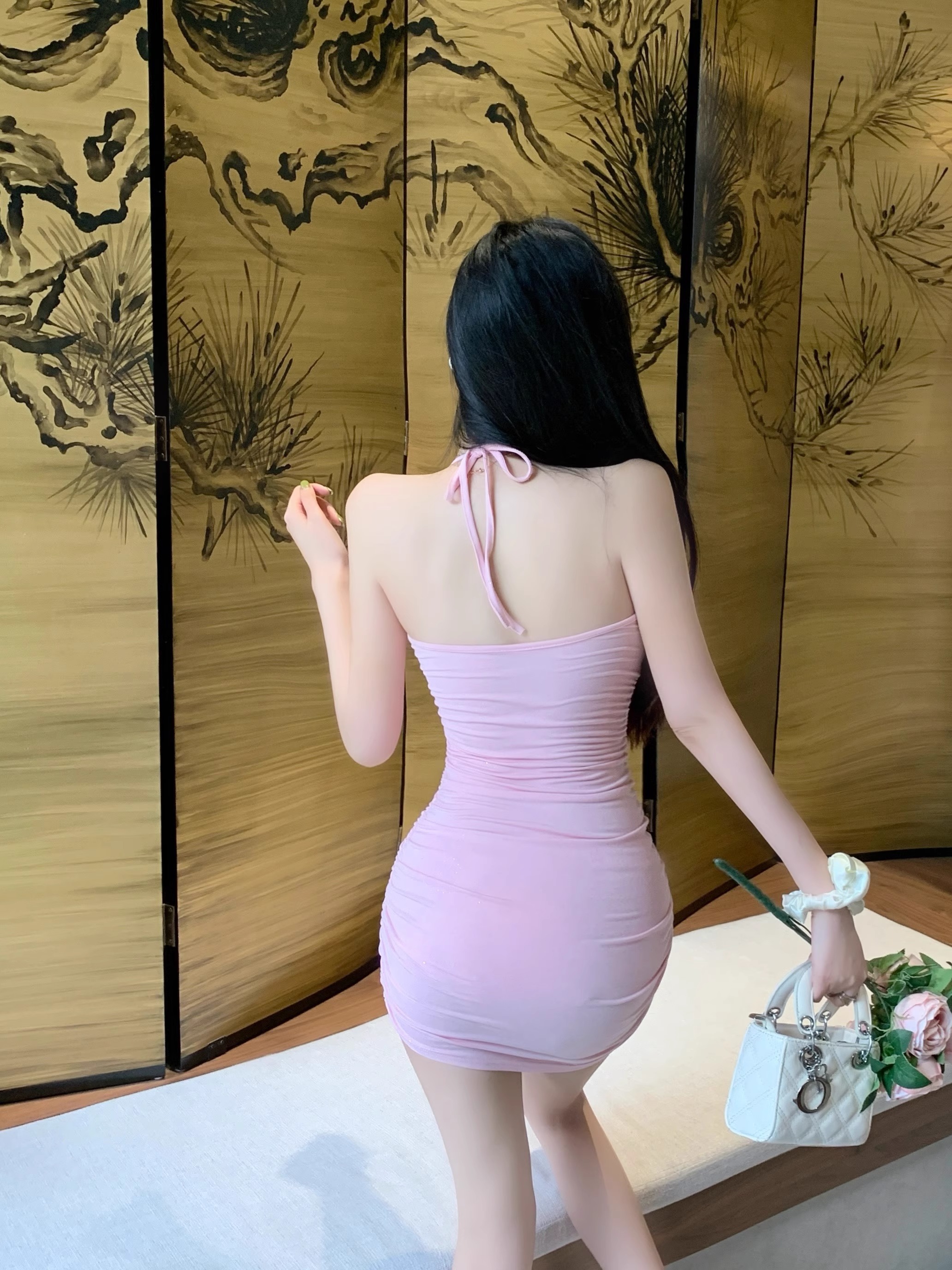 • Floral pink halter top dress for women, summer style, sexy bodycon dress with bra pads, halter neck, strapless dress.