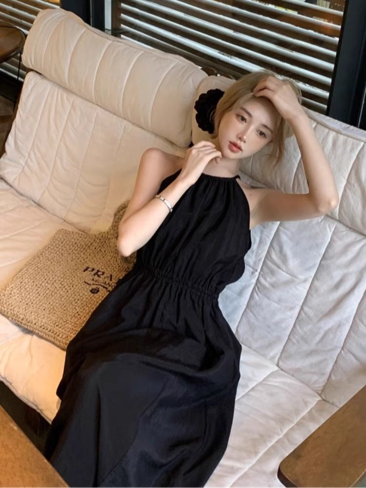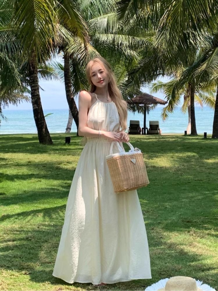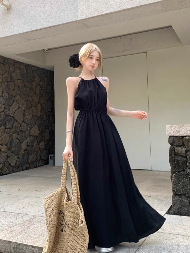 Sleeveless halter neck sundress for women, summer 2025 new style, French beach style, perfect for a beach vacation.