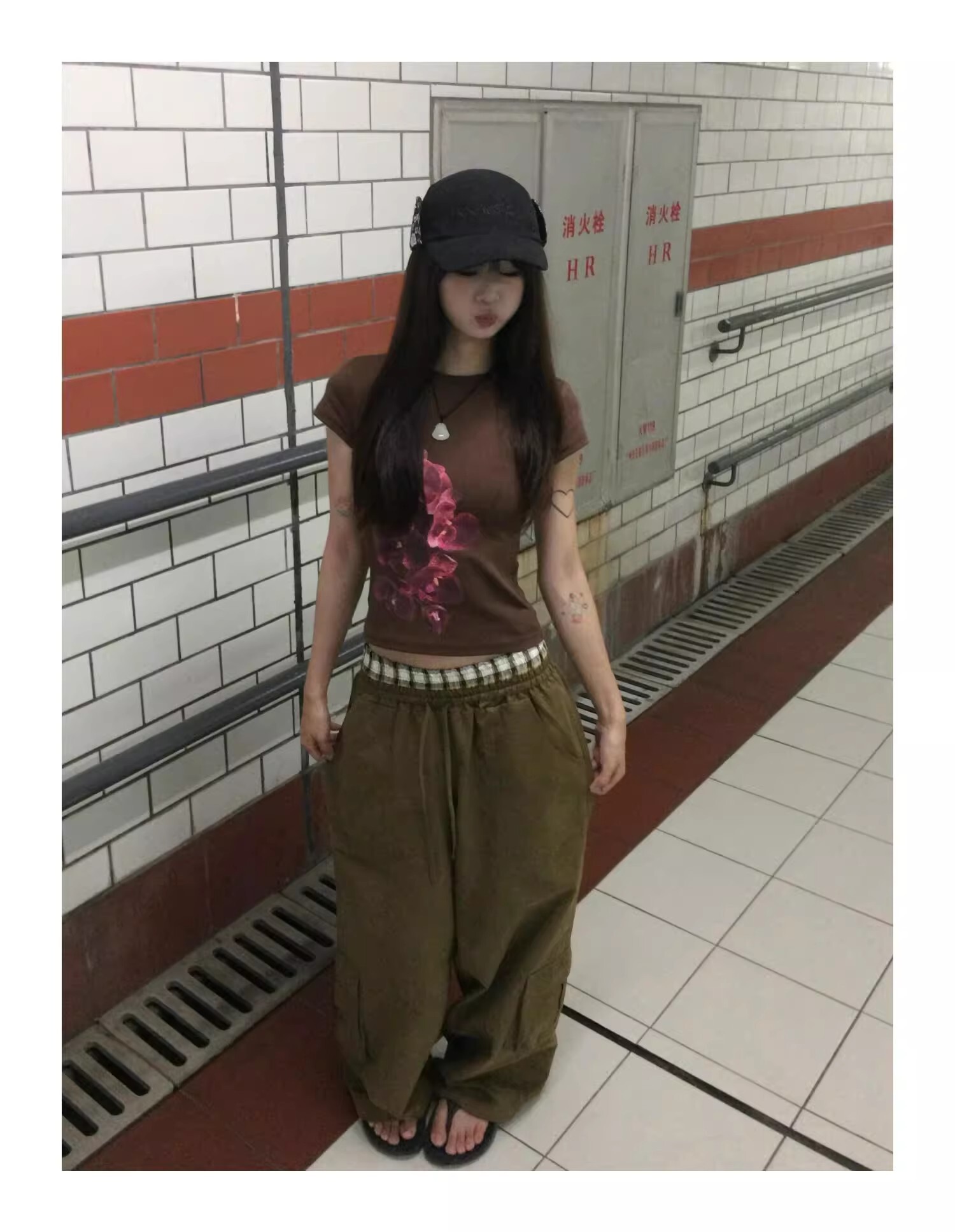 ![[1*1 Pure Cotton Regular Style] Printed Straight Shoulder Regular Short Sleeve High Elasticity New Summer Slim Fit](images/zmwp6820_04.jpg)