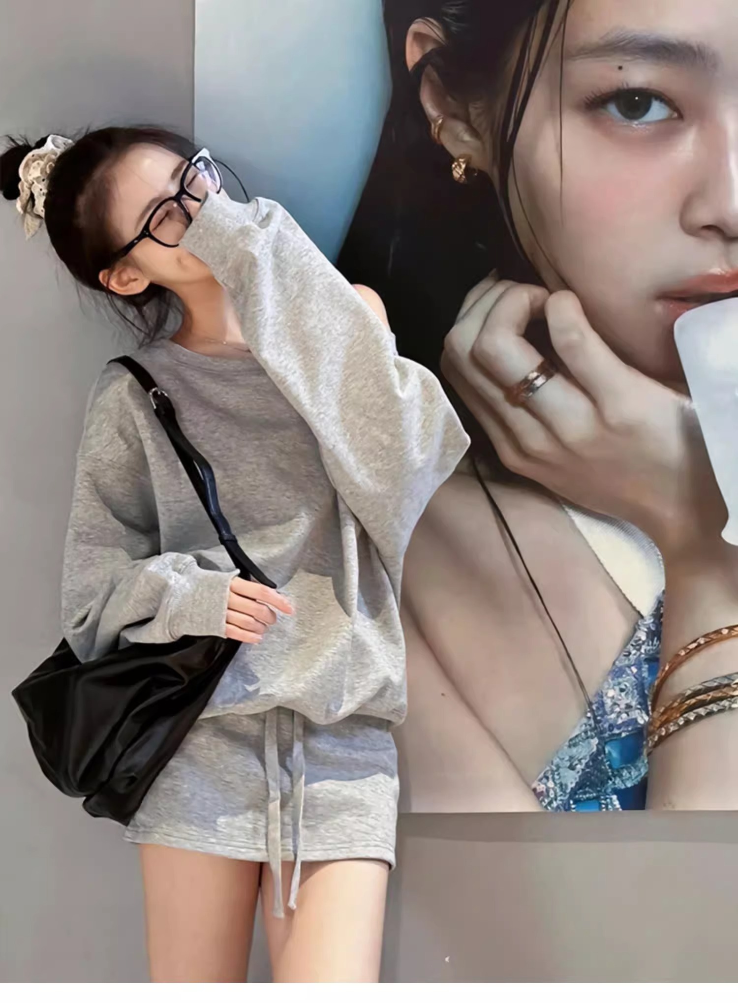 • Korean-style early autumn 2024 new American-style hot girl sweatshirt, pants, skirt and top two-piece outfit