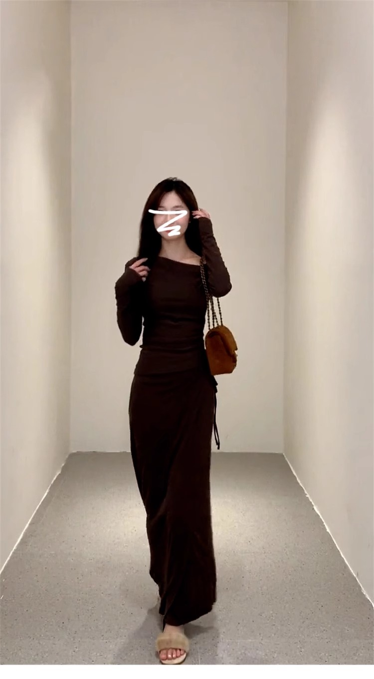 Sexy and stylish two-piece set for women, featuring a slim-fitting off-shoulder top and high-waisted skirt, perfect for petite women.
