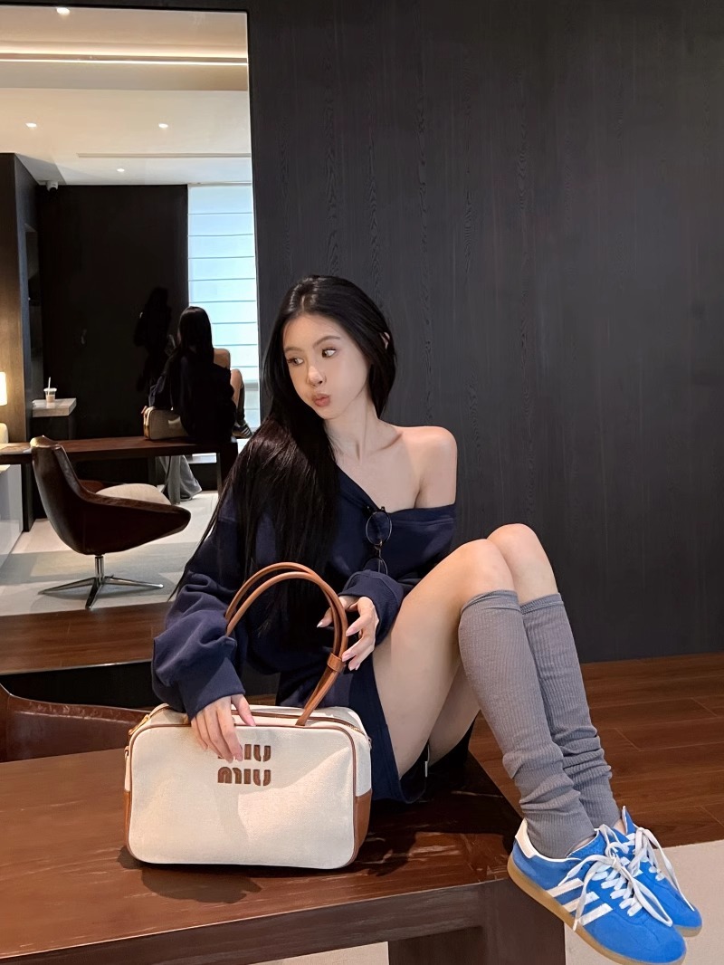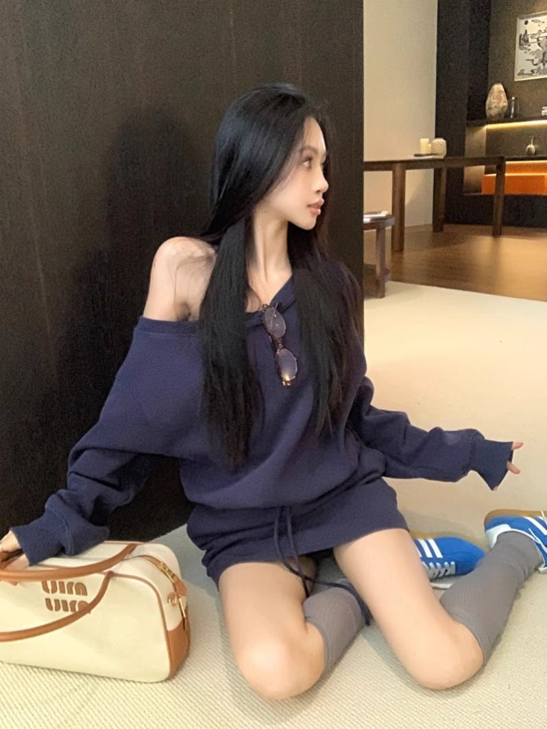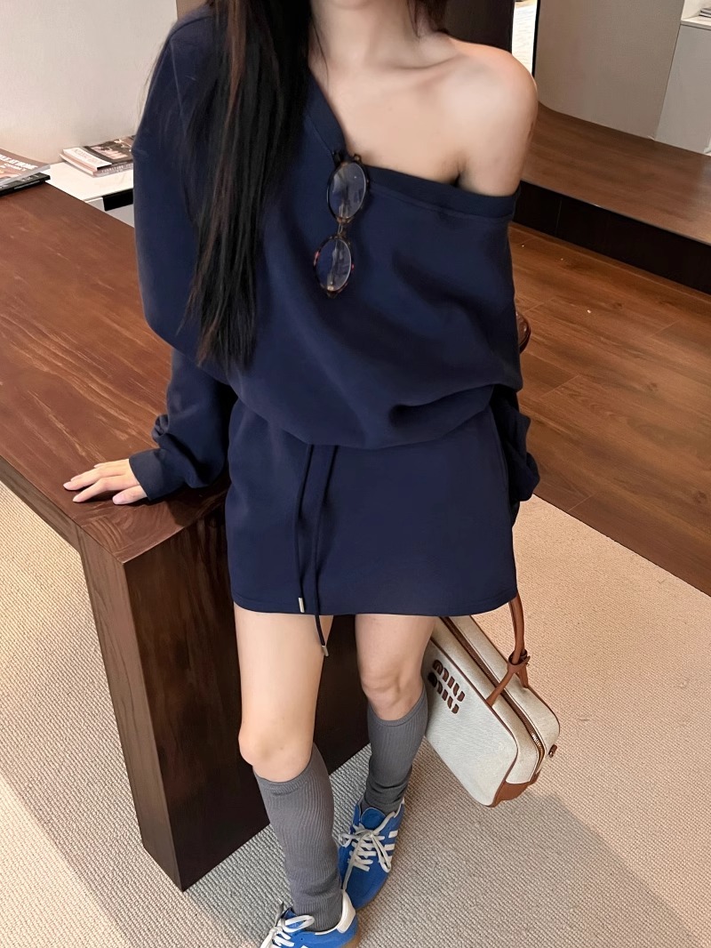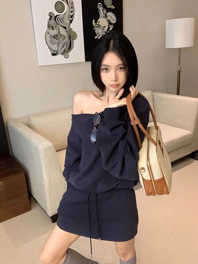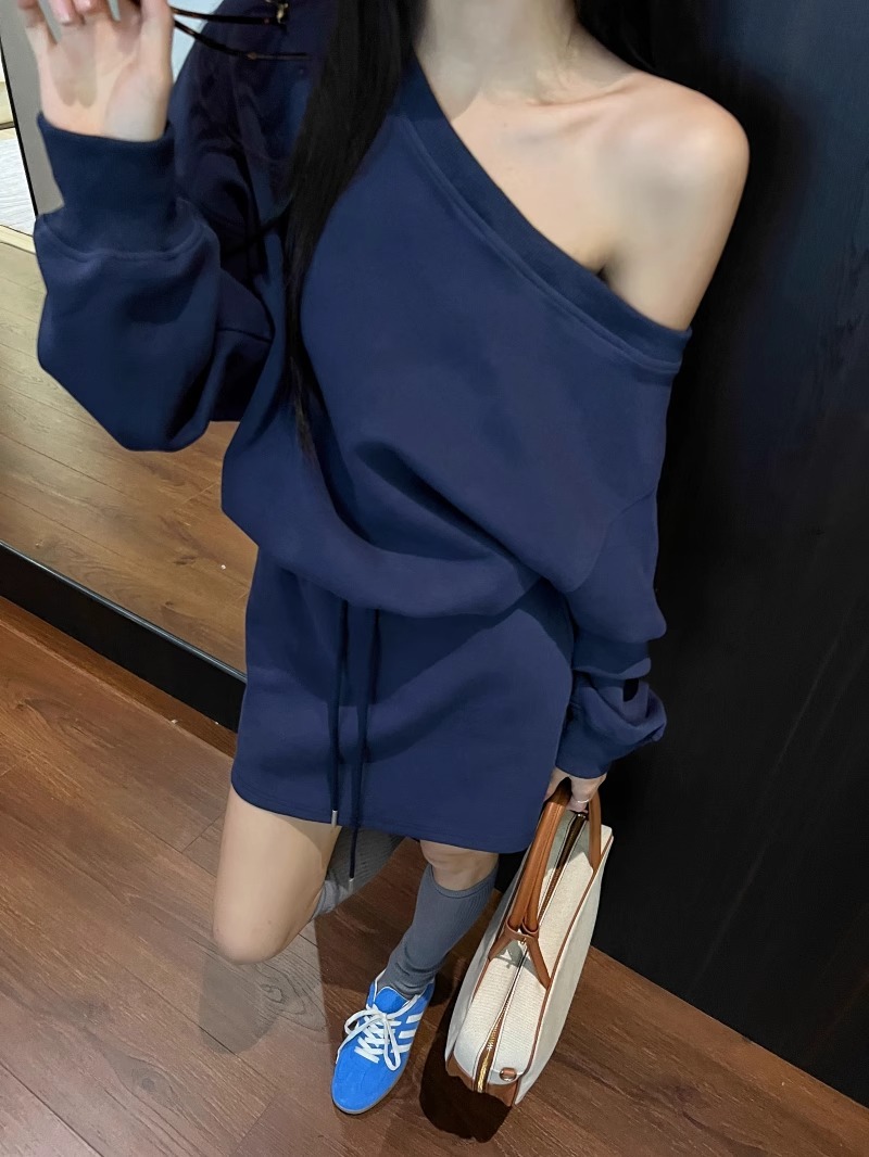 Lusi's American-style off-shoulder sweatshirt for women, autumn 2024 new style, relaxed and loose fit, long sleeves.