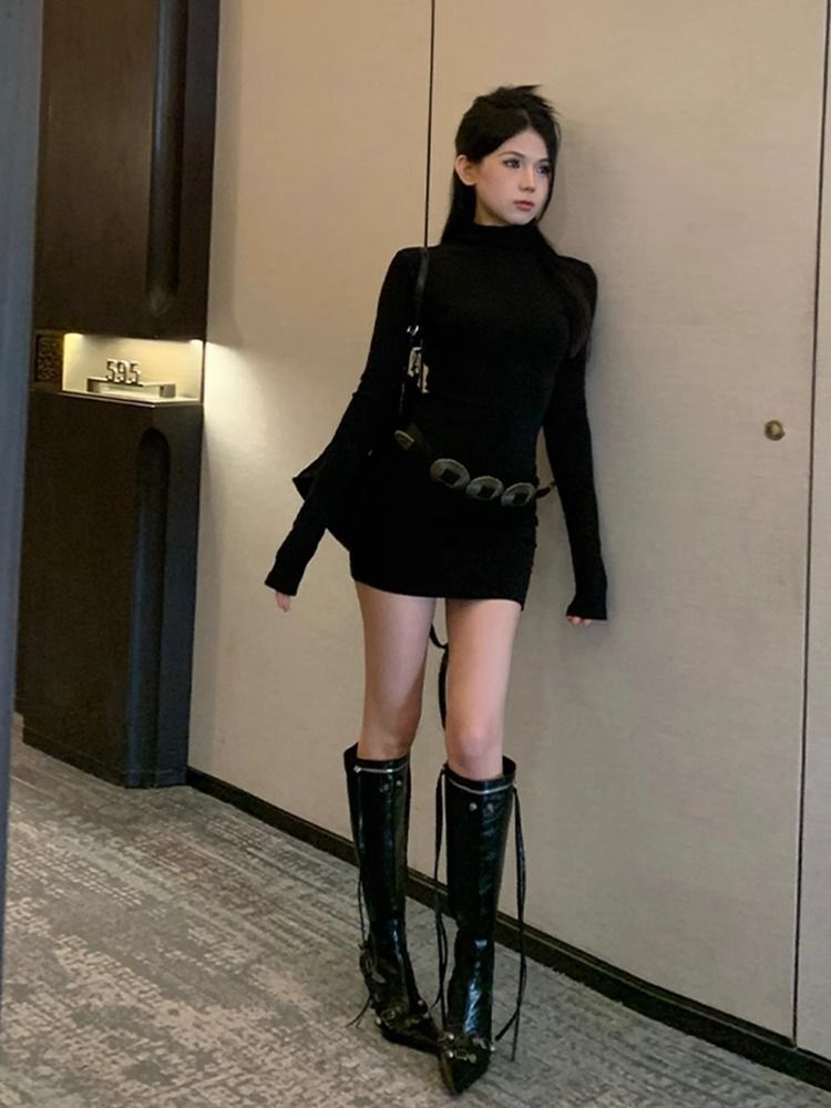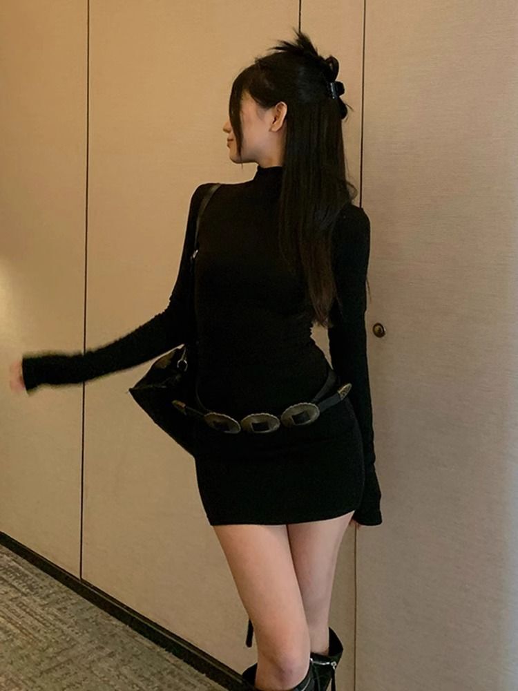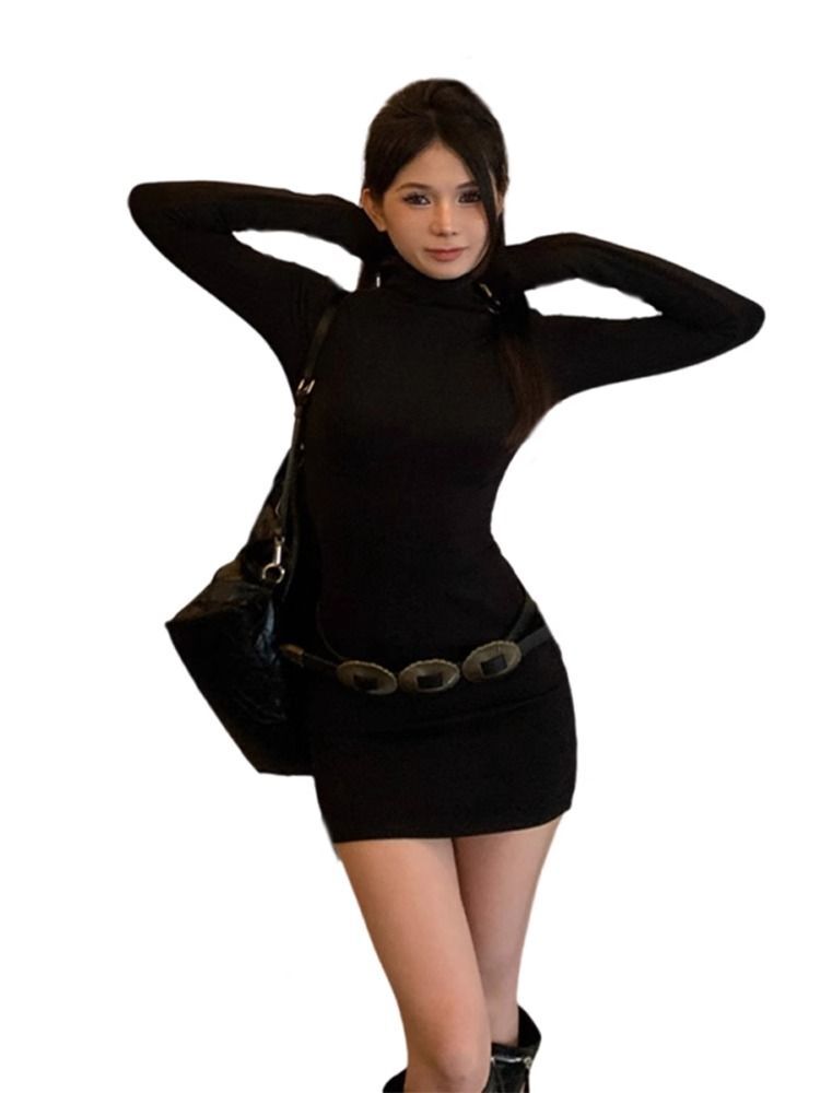 Black bodycon dress for women, new autumn 2024 style, long sleeves, slim fit, high-end look, sexy style.