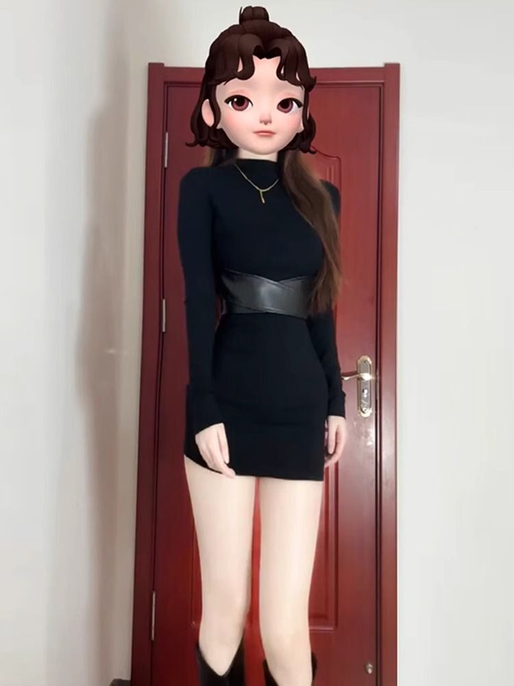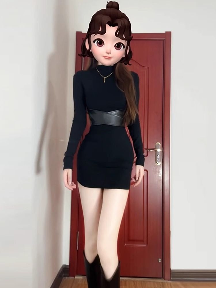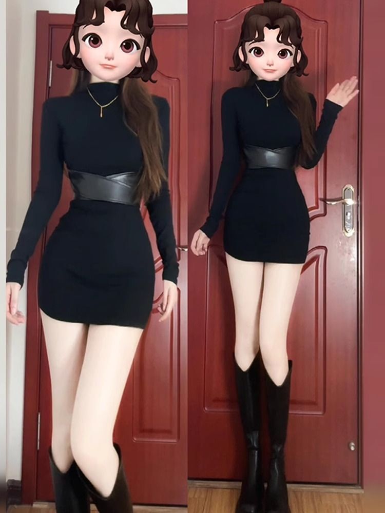French-style black turtleneck dress for women, perfect for autumn/winter 2025, flattering, slimming, waist-cinching, and hip-hugging.